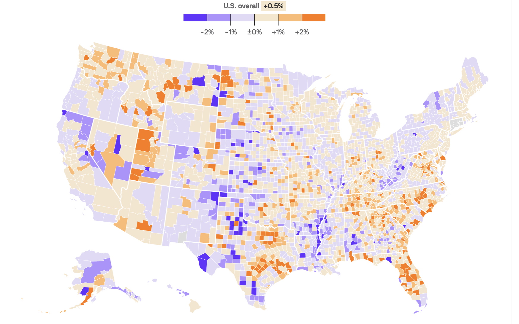 Across the U.S., population growth basically got cut in half.